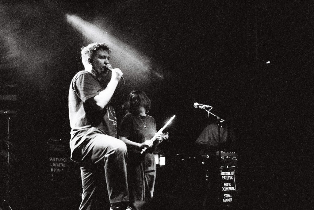 A proudly independent outfit, Los Campesinos! are an outspoken and unflinchingly progressive force in the UK scene. Flying a banner on stage preaching “safety, dignity and healthcare for all trans people,” they only play at venues with gender-neutral facilities, they set aside a portion of tickets for every show for low-income fans, their opening acts always include at least one non-male member, and in a highly publicised move, last April they refused a £45,000 song licensing deal from Airbnb on the belief they profit on stolen Palestinian land. If turning down an eye-watering sum seems like a difficult move, David is quick to clarify.
